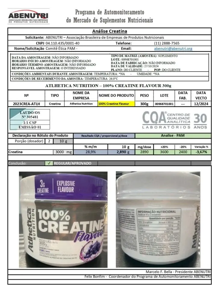 A Creatina Atlhetica passou no relatório ABENUTRI?
